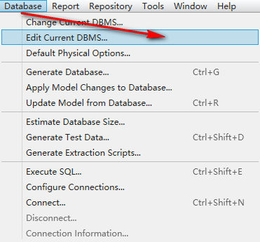 1.第一步,按“Database”»“Edit Current DBMS..”打开,如下图所示: